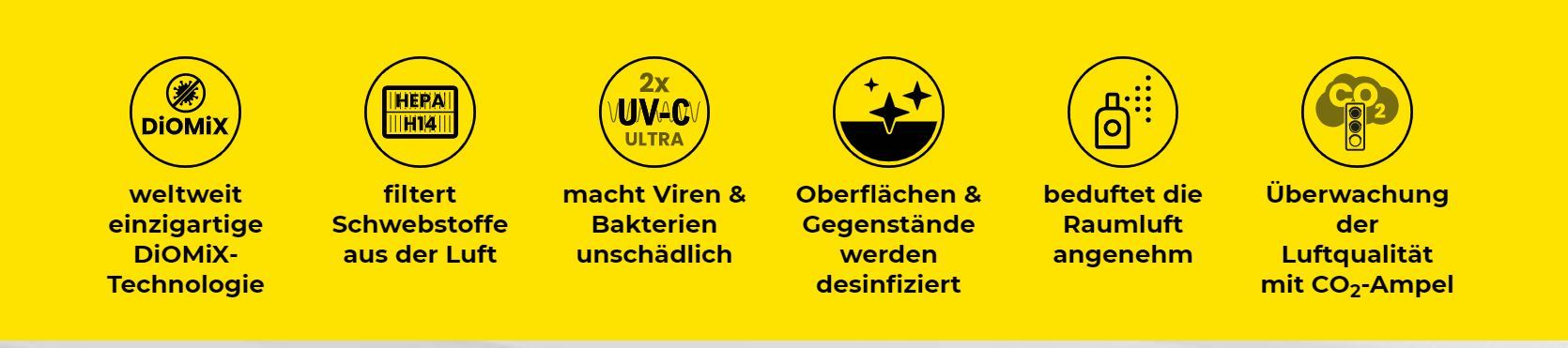 Durch ein 5-dimensionale Raumluft- und Flächenhygiene-Konzept können Aerosole neutralisiert und gleichzeitig Oberflächen und Gegenstände mit DIOMIX desinfiziert werden,